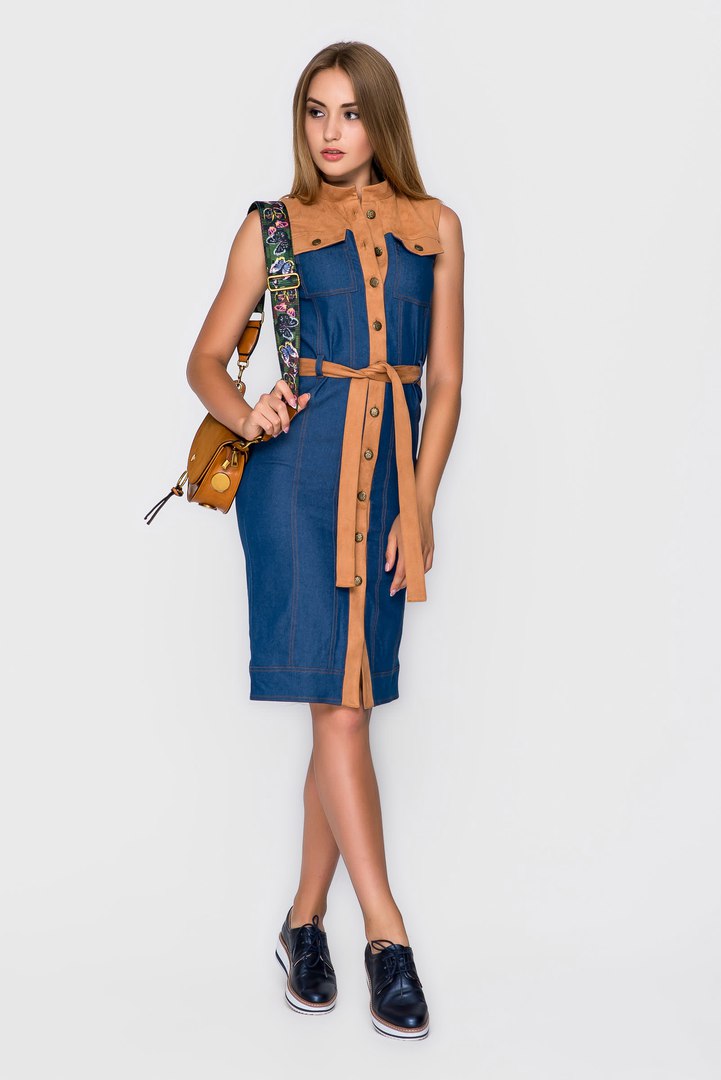 Изюминка новой осенней коллекции 2017 - платье из денима с замшевыми вставками под пояс. Деним достаточно плотный, поэтому, платье будет отлично держать форму, и поможет отлично скрыть недостатки фигуры. Такая уникальная вещь способна вписаться в любой образ и под любой стиль одежды.