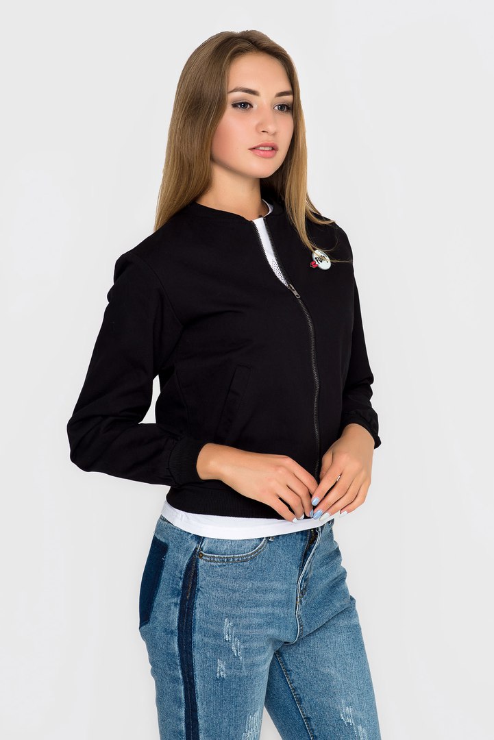 Куртка бомбер, повседневная из плотного коттона, прямого силуэта. Перед с центральной застежкой молнией, с диагональными карманами листочками. Спинка - цельнокроеная. Низ изделия манжет -резинка. Рукав втачной, длинный, одношовный с манжетой -резинкой. Воротник полустойка - резинка