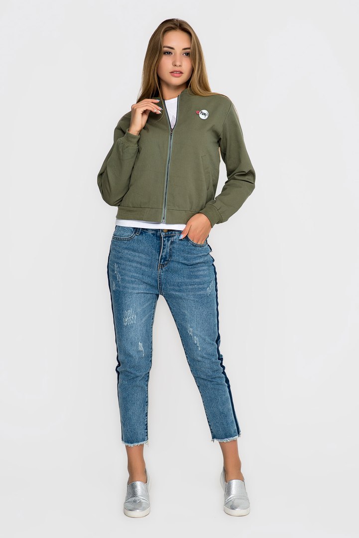 Куртка бомбер, повседневная из плотного коттона, прямого силуэта. Перед с центральной застежкой молнией, с диагональными карманами листочками. Спинка - цельнокроеная. Низ изделия манжет -резинка. Рукав втачной, длинный, одношовный с манжетой -резинкой. Воротник полустойка - резинка