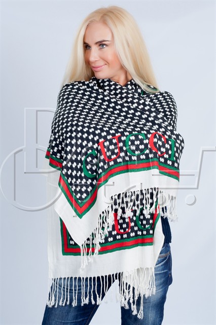 В последнее время шарф стал популярным аксессуаром у женщин, благодаря популяризации звездами. Такой шарф украсит любую модницу, благодаря оригинальному принту из цветных фигурок GUCCI. Будте самыми красивыми!